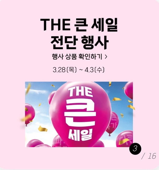 또한 다양한 생필품 50% 할인, 포기김치 1+1 기획 하기스 기저귀 50% 할인, 하림 닭볶음탕 1+1 할인, 청정원/종가 5천원 할인쿠폰 지급 등 여러 행사를 하고 있으니 꼭 둘러보시고 할인 상품들 저렴하게 구매하시길 바랍니다.
