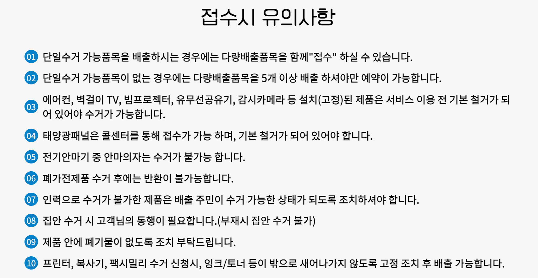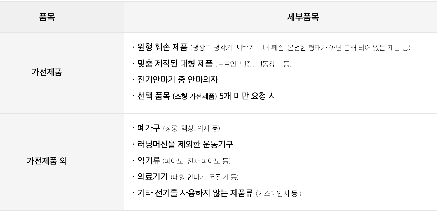또한 아래처럼 수거 불가능한 품목이 있기 때문에 이 부분도 유의하셔야 합니다.