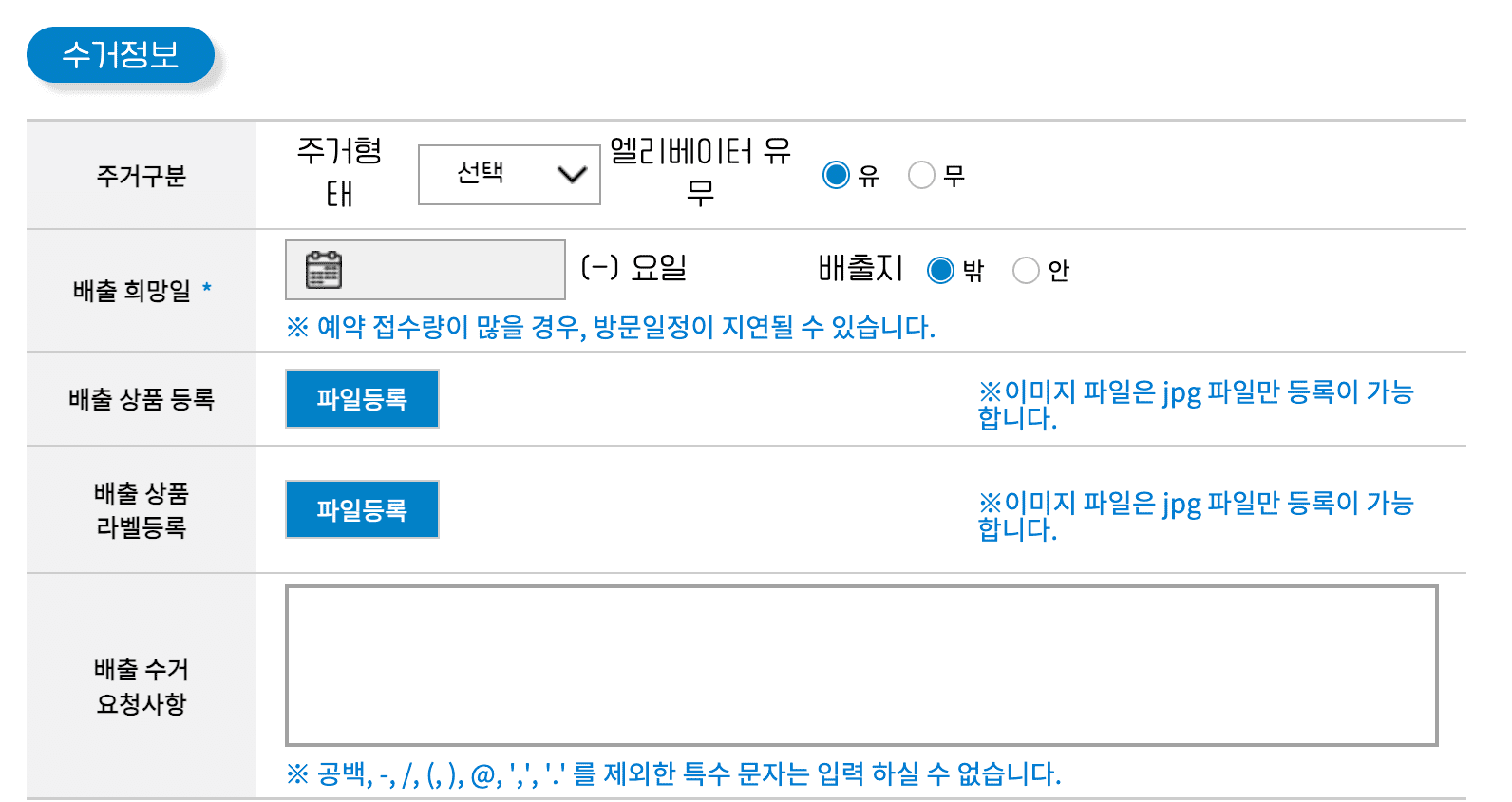▶ 단일배출 품목 : 1개만 배출하여도 무상 방문수거 신청이 가능