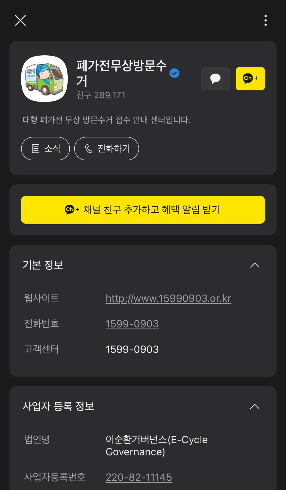 - 카카오톡 ID: 폐가전무상방문수거 또는 weec로 검색하여 카카오톡을 통해 신청할 수 있습니다.
