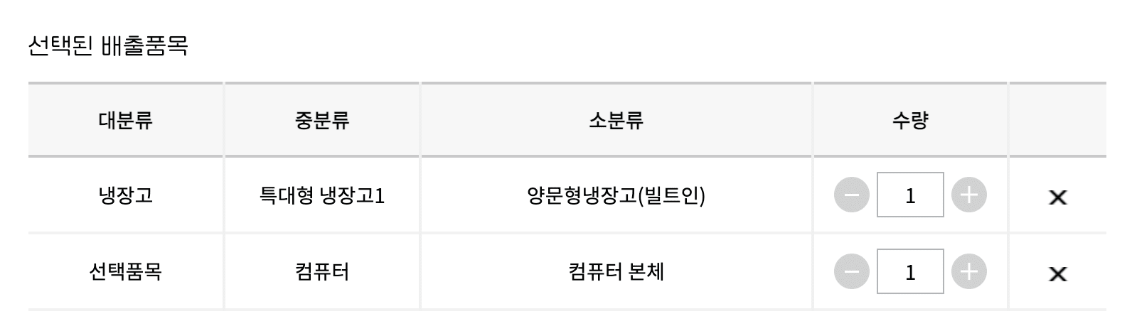 단일수거품목과 다량수거품목은 함께 신청할 수 있으며 단일 수거 품목 역시 여러개 제품을 한번에 신청하실 수 있습니다.